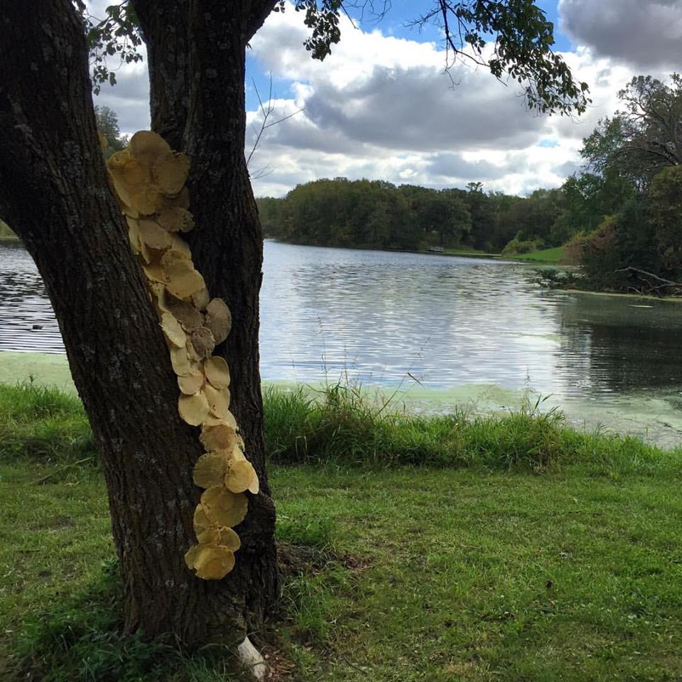 The works are located around the lake and were viewed from the walking trail as well as the hay rack ride during the story county conservation fall festival.