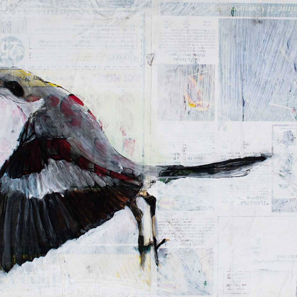 Kristin uses scientific data and cast-off materials to create drawings, paintings, and immersive installations about her backyard ecology. She’s most known for the Junk Mail Migration series of bird paintings, her business Little Woods, and her book Mend it Better.