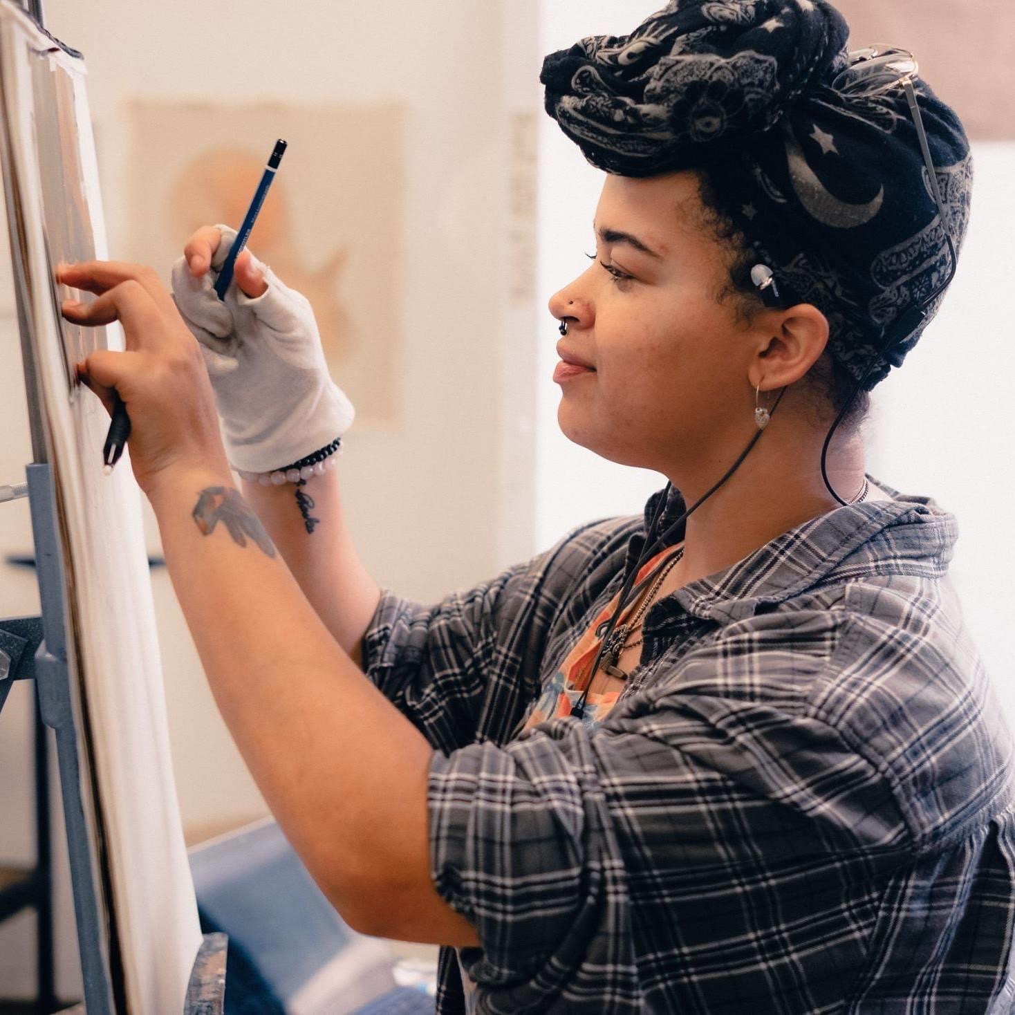 Their art is heavily inspired by celestial bodies, music, Black creatives, and the natural world. They wish to educate and celebrate with their art, providing pieces for clients to cherish for lifetimes. Their current mediums of choice are wood burning and digital illustration, but they are well versed in many forms of traditional materials as well.