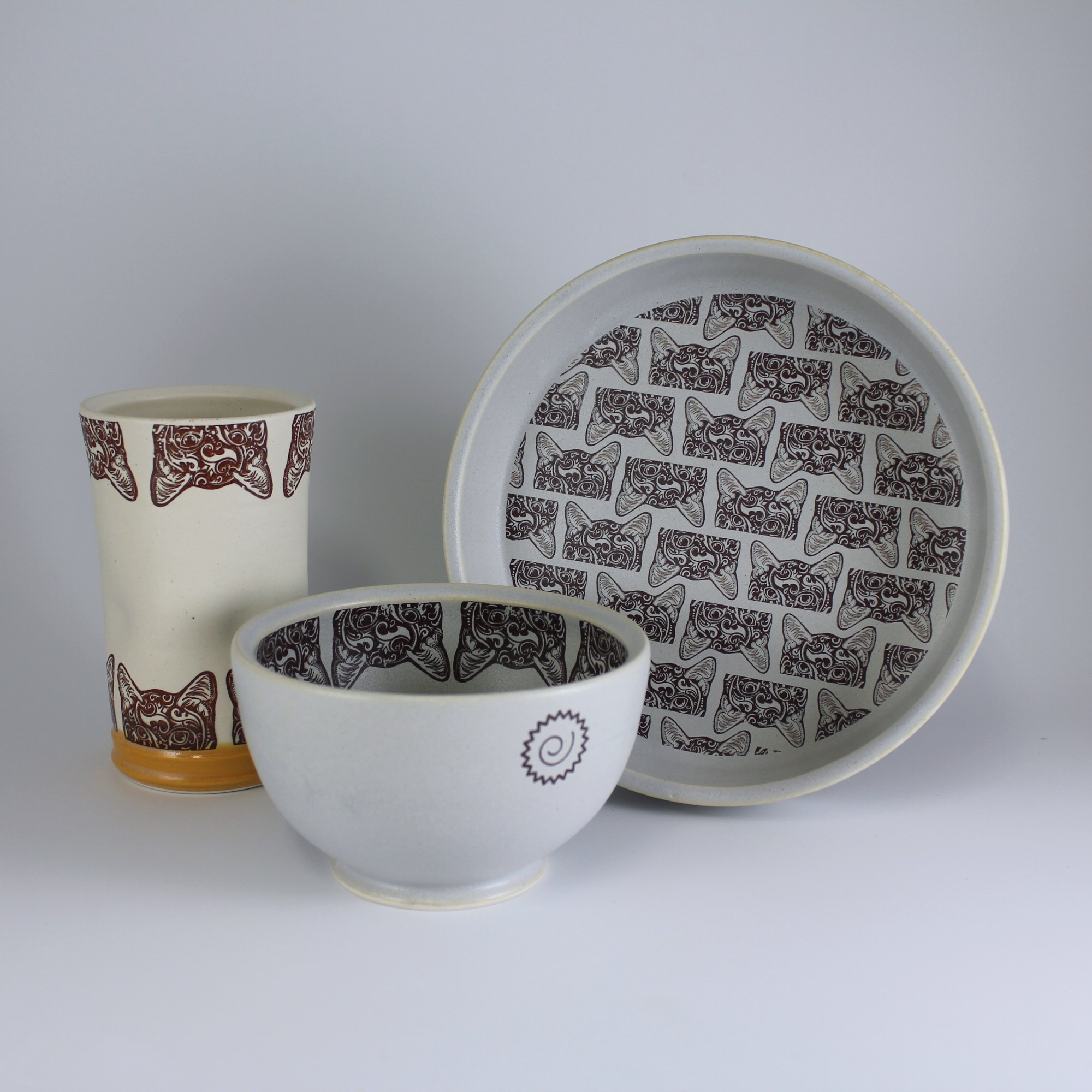 I am an emerging multimedia artist from Iowa, focusing in acrylic painting and ceramics. My art is all connected through my animal designs, which form the base of my brand. I create unique, folk-style animal paintings on wood, which I use to decorate my hand-thrown porcelain pottery using black iron oxide printed decals. My forms and pastel glazes are unique to my brand and fired in an electric kiln to cone 6. I perform every step in my process by hand. My ceramic forms are a canvas to display and spread my animal creations.